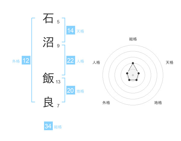 石沼 飯良さんの総格は34画の2点!