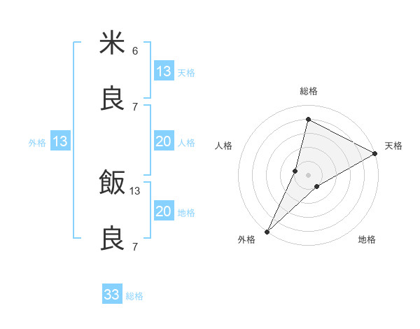 米良 飯良さんの総格は33画の4点!