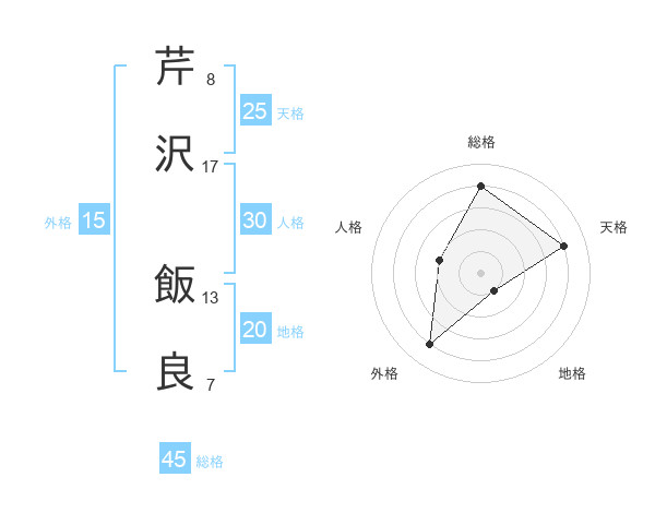芹沢 飯良さんを姓名の画数から五運を鑑定