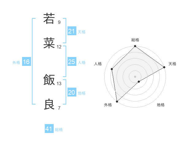 若菜 飯良さんの外格は16画の5点!