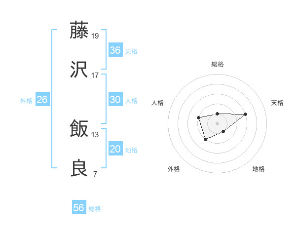 藤沢 飯良さんの総格は56画の1点!