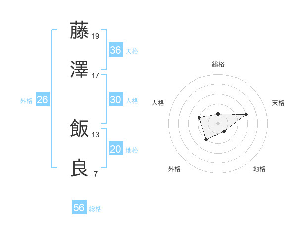 藤澤 飯良さんの総格は56画の1点!