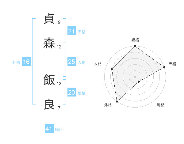 貞森 飯良さんの天格は21画の5点!