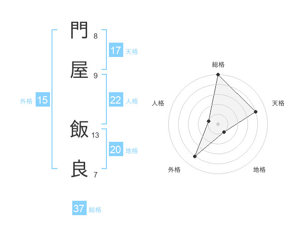 門屋 飯良さんの総格は37画の5点!