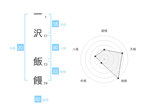 一沢 飯饅さんの総格は50画の2点!