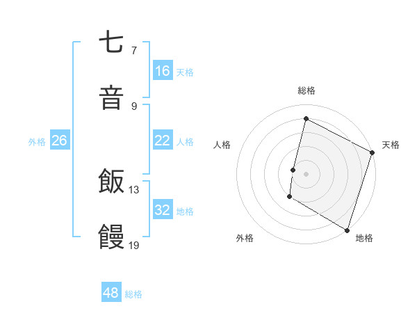 七音 飯饅さんの総格は48画の4点!