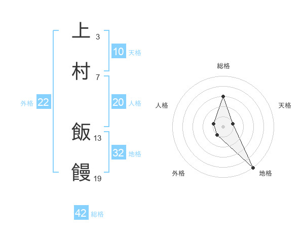 上村 飯饅さんを姓名の画数から五運を鑑定