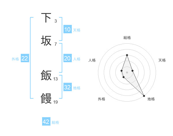 下坂 飯饅さんを姓名の画数から五運を鑑定