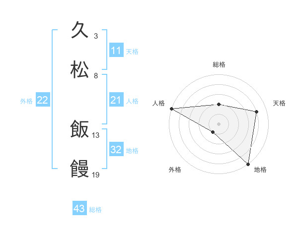 久松 飯饅さんの総格は43画の2点!