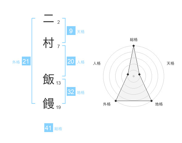 二村 飯饅さんを姓名の画数から五運を鑑定