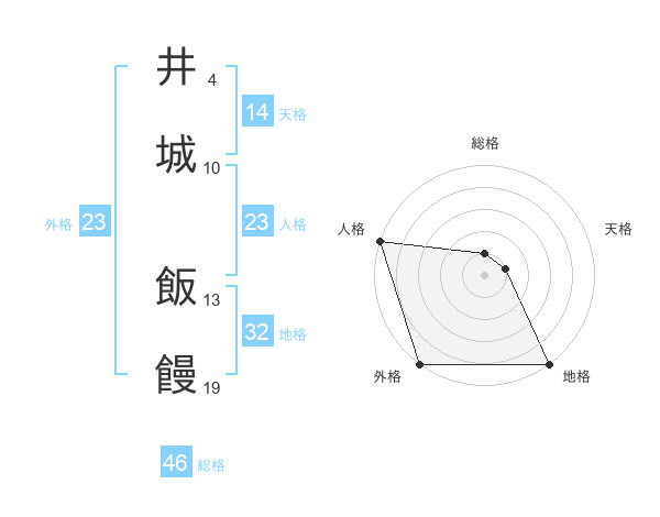 井城 飯饅さんを姓名の画数から五運を鑑定