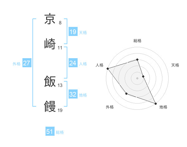 京崎 飯饅さんの総格は51画の3点!