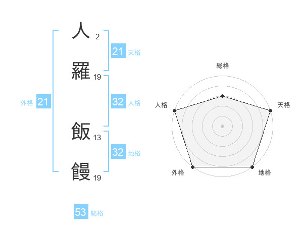 人羅 飯饅さんの外格は21画の5点!
