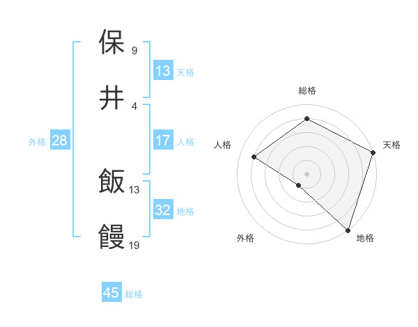 保井 飯饅さんの総格は45画の4点!
