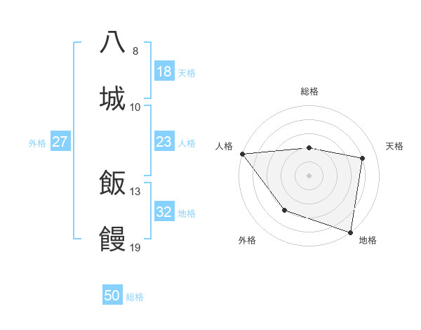 八城 飯饅さんを姓名の画数から五運を鑑定