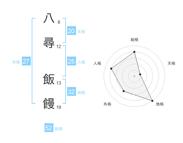 八尋 飯饅さんの総格は52画の4点!