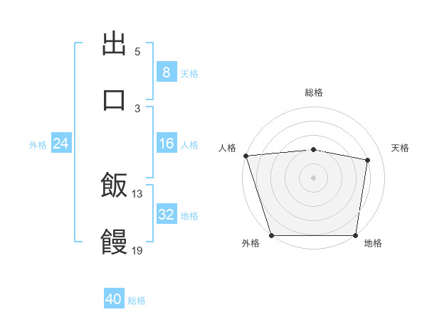 出口 飯饅さんの総格は40画の2点!