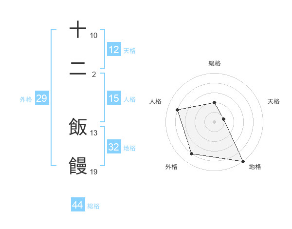 十二 飯饅さんの総格は44画の2点!