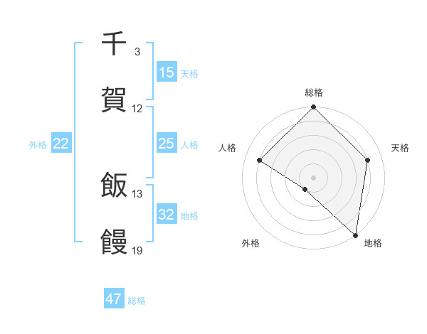 千賀 飯饅さんを姓名の画数から五運を鑑定