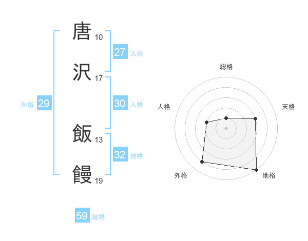 唐沢 飯饅さんを姓名の画数から五運を鑑定