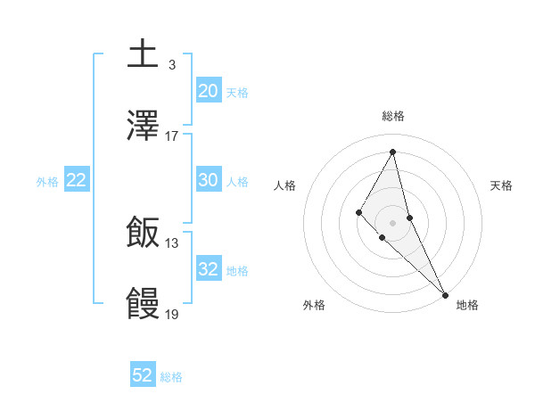 土澤 飯饅さんの総格は52画の4点!