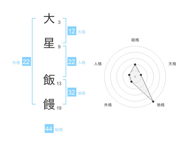 大星 飯饅さんを姓名の画数から五運を鑑定
