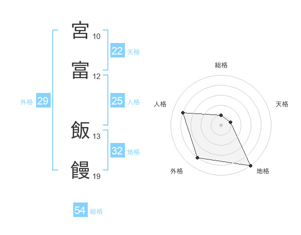 宮富 飯饅さんを姓名の画数から五運を鑑定