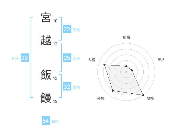 宮越 飯饅さんを姓名の画数から五運を鑑定