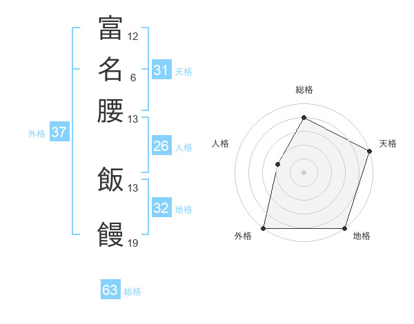 富名腰 飯饅さんを姓名の画数から五運を鑑定