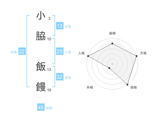 小脇 飯饅さんを姓名の画数から五運を鑑定