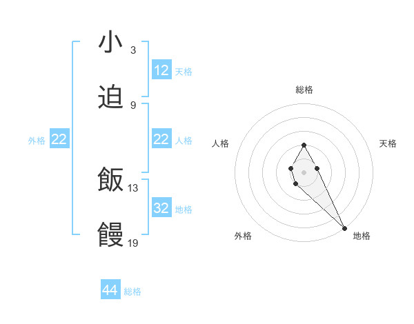 小迫 飯饅さんの総格は44画の2点!