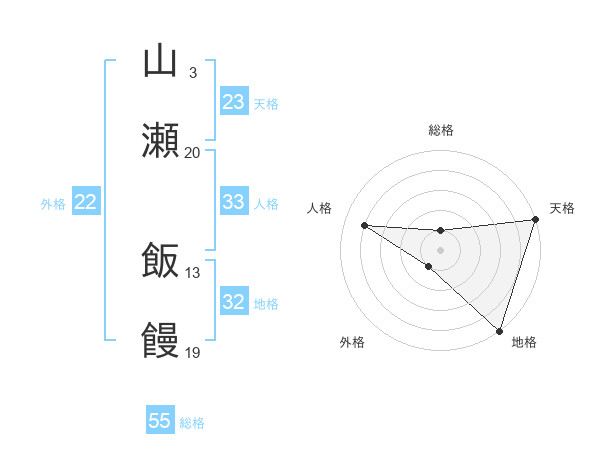 山瀬 飯饅さんの総格は55画の1点!