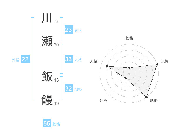 川瀬 飯饅さんを姓名の画数から五運を鑑定
