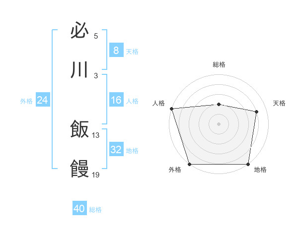 必川 飯饅さんを姓名の画数から五運を鑑定