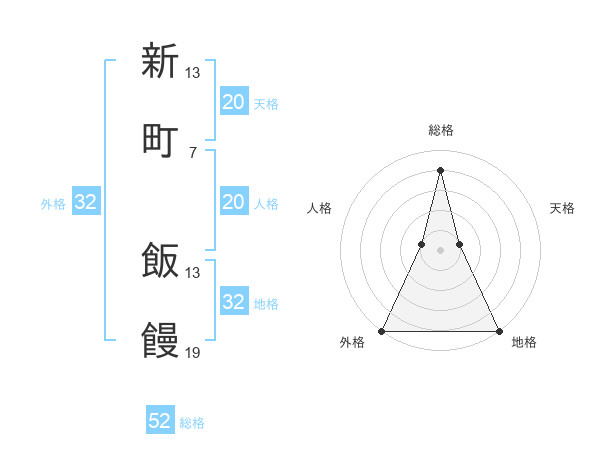新町 飯饅さんの総格は52画の4点!