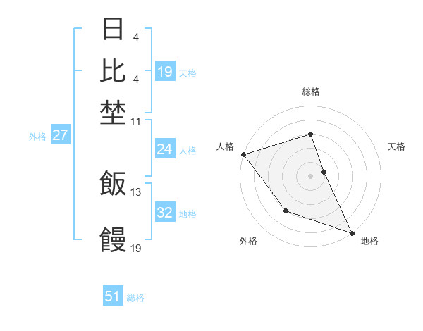 日比埜 飯饅さんを姓名の画数から五運を鑑定