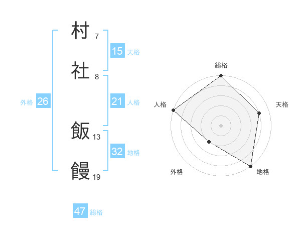 村社 飯饅さんの総格は47画の5点!