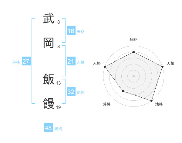 武岡 飯饅さんの総格は48画の4点!