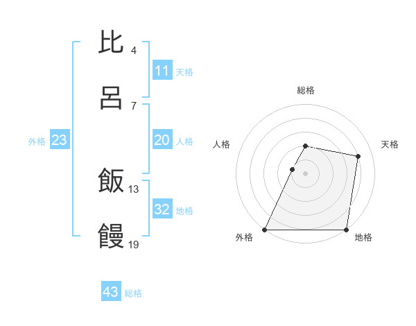 比呂 飯饅さんを姓名の画数から五運を鑑定