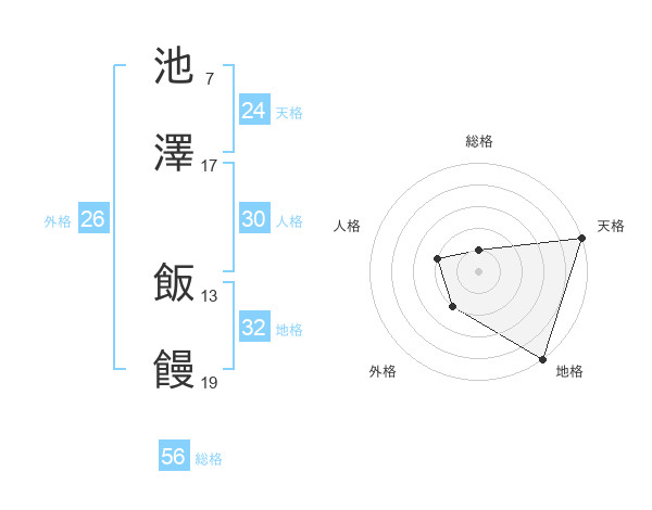 池澤 飯饅さんを姓名の画数から五運を鑑定