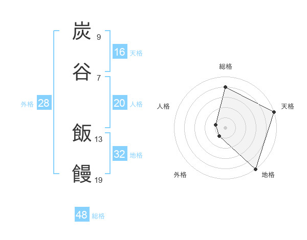 炭谷 飯饅さんの総格は48画の4点!