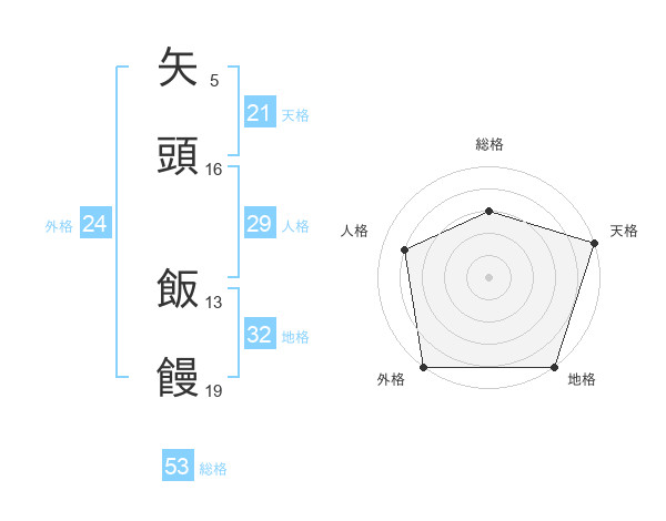 矢頭 飯饅さんを姓名の画数から五運を鑑定