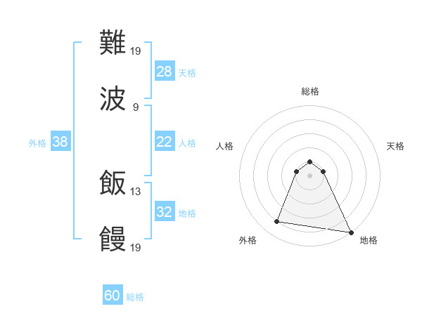 難波 飯饅さんを姓名の画数から五運を鑑定