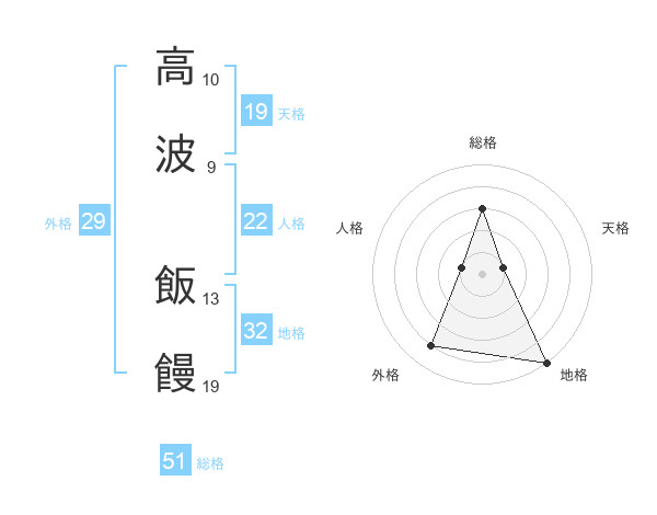高波 飯饅さんの総格は51画の3点!
