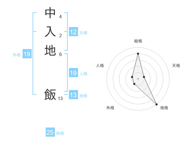 中入地 飯さんの総格は25画の4点!