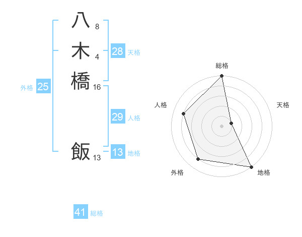 八木橋 飯さんを姓名の画数から五運を鑑定