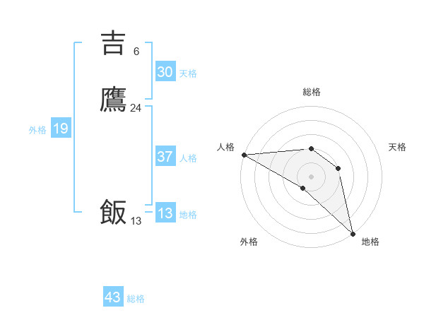 吉鷹 飯さんを姓名の画数から五運を鑑定
