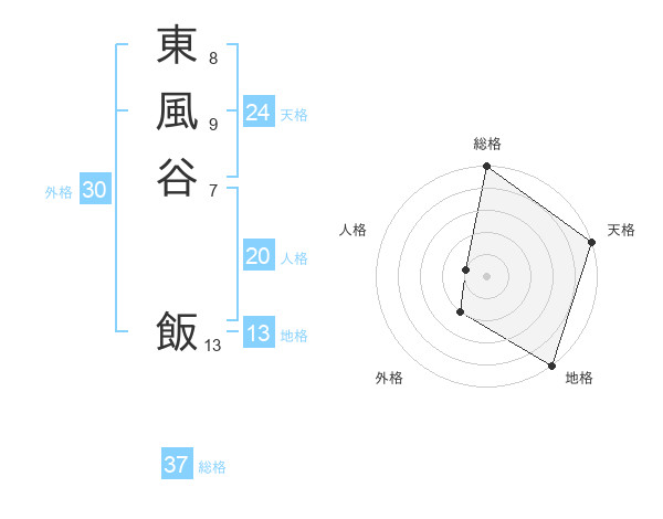 東風谷 飯さんの総格は37画の5点!