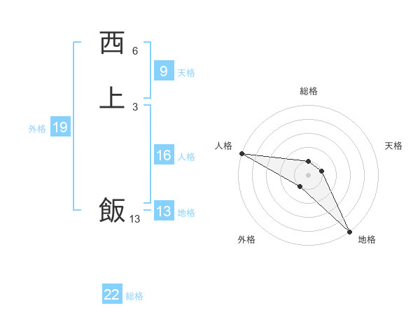 西上 飯さんの総格は22画の1点!