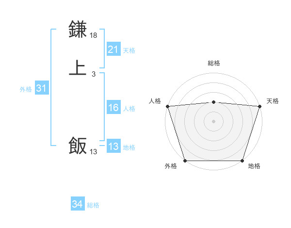 鎌上 飯さんの天格は21画の5点!